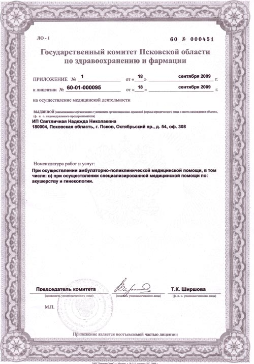 1. Гинекологический осмотр (приём + мазки(2) + перчатки и пр.) |