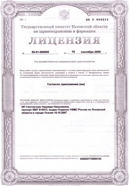 1. Гинекологический осмотр (приём + мазки(2) + перчатки и пр.) |